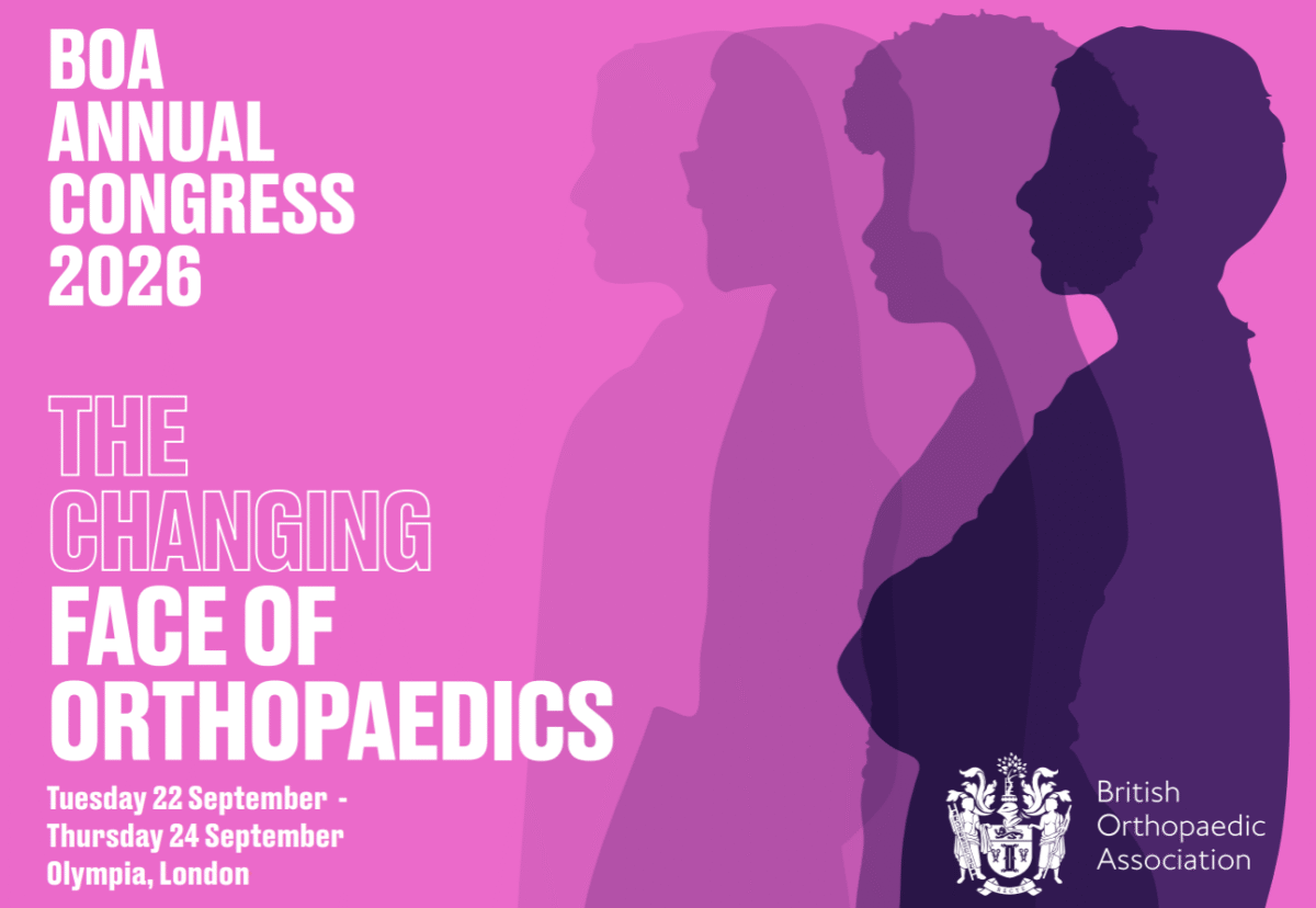 The next BOA Annual Congress – with the theme of ‘the Changing Faces of Orthopaedics’ – is taking place at Olympia in London on 22nd-24th September 2026. For more details, please visit here.