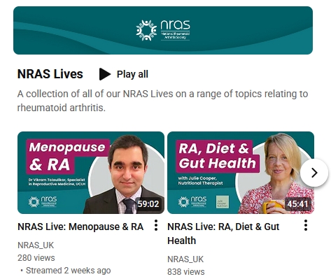 Including topics such as diet, stress, menopause, foot health and many more. You can view them all on the NRAS Youtube channel.
